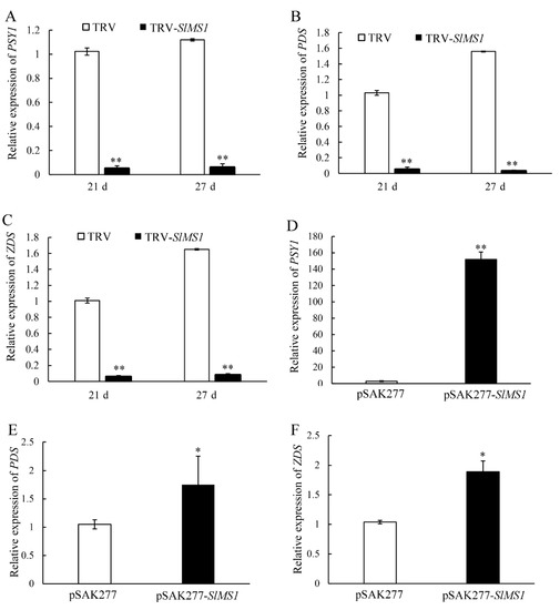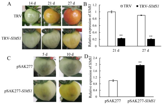 4.3. VIGS of SlMS1 and Transient Overexpression of SlMS1 in Tomato Fruit