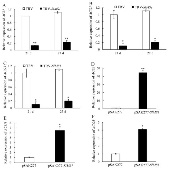 2.7. Effect of Gene Silencing and Overexpression of SlMS1 on the Expression of Ethylene Biosynthesis Genes