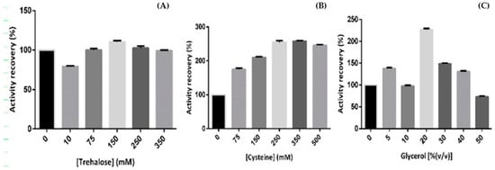 | Trehalose | Thermal stabilizers/promote protein folding and refolding | 10 to 350 mM |