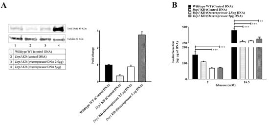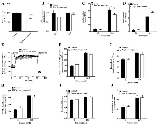 2.3. Reduced Insulin Content in Drp1-Overexpressing MIN6 Cells