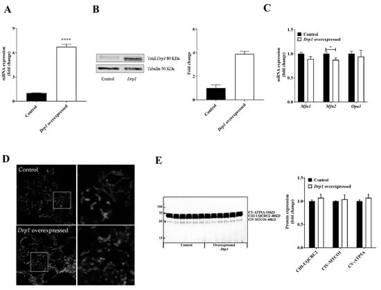 2.2. Drp1 Overexpression Altered Mitochondrial Morphology But Had No Effect on Mitochondrial Respiratory Complexes in MIN6 Cells