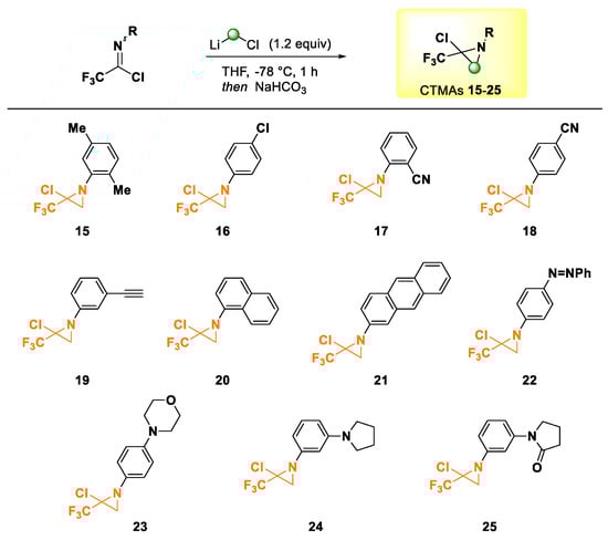 3.2.2. General Procedure for Preparing Chloro-Trifluoromethylaziridines (CTMAs) []