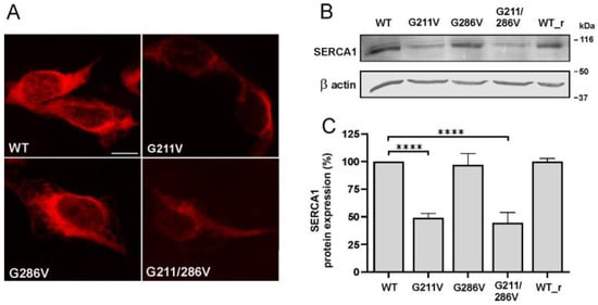 2.1. Effect of G211V and G286V Mutations on SERCA1 Protein Expression