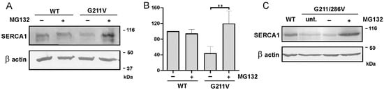 2.4. Quantitative and Qualitative Recovery of G211V SERCA1 Mutant after Proteasome Inhibition and Ubiquitination of G211V Mutant