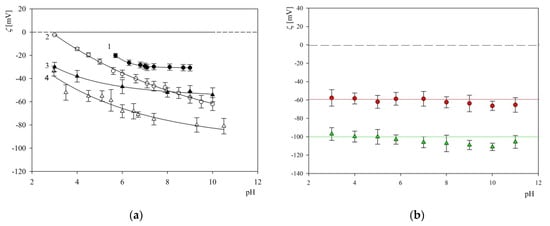 - Adamczyk, Z.; Sadlej, K.; Wajnryb, E.; Nattich, M.; Ekiel-Jeżewska, M.L.; Bławzdziewicz, J. Streaming potential studies of colloid, polyelectrolyte and protein deposition. Adv. Colloid Interface Sci. 2010, 153, 1–29. [Google Scholar] [CrossRef] [PubMed]