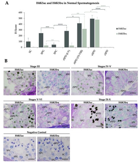 2.1. H4K5 Butyrylation Show Different Spermatogenic Pattern to Acetylation on the Same Residue in Patients with Normal Spermatogenesis
