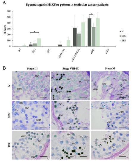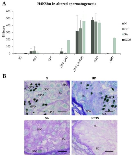 2.2. H4K5 Butyrylation Spermatogenic Levels Are Not Impaired under Different Testicular Defects