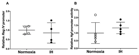 2.3. The Promoter Activities of Reg IV and Hgf Were Not Increased by IH
