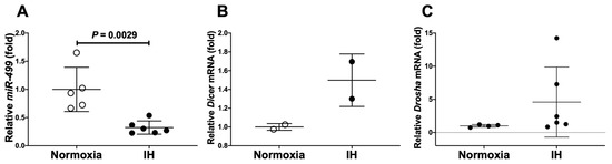 2.4. The miR-499 Level Was Significantly Decreased by IH