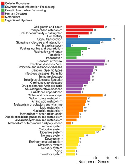 - Li, B.; Dewey, C.N. RSEM: Accurate transcript quantification from RNA-Seq data with or without a reference genome. BMC Bioinform. 2011, 12, 323. [Google Scholar] [CrossRef] [PubMed]