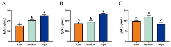 2.2. Serum Immune Levels of Tibetan Sheep at Different Altitudes