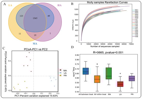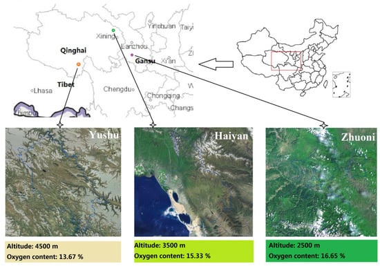 , n = 6/group, Non-pregnant) were selected as research subjects. All sheep were under traditional local natural grazing management and no supplementary feeding was carried out, and grazed on fixed pastures from 8 am to 7 pm. In August 2020, samples were collected in Zhuoni (LA, 2500 m, Gansu province), Haiyan (MA, 3500 m, Qinghai province), and Yushu (HA, 4500 m, Qinghai province) in the Qinghai–Tibet Plateau region (Figure 12), and the three sampling sites belong to Qinghai Plateau and its adjacent areas.4.2. Sample Collection