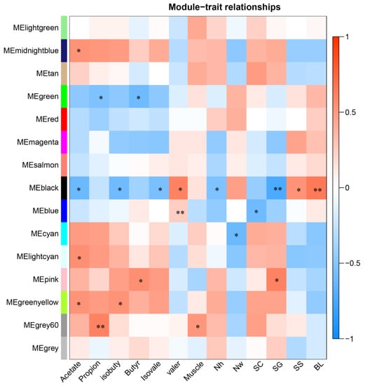 2.7.1. WGCNA of Host Transcriptome and Phenotypic Traits