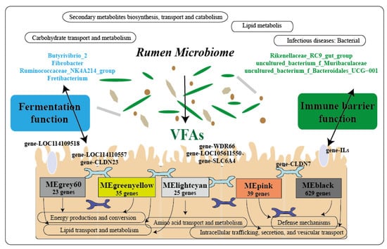 - Liu, X.; Sha, Y.; Dingkao, R.; Zhang, W.; Lv, W.; Wei, H.; Shi, H.; Hu, J.; Wang, J.; Li, S.; et al. Interactions between rumen microbes, VFAs, and host genes regulate nutrient absorption and epithelial barrier function during cold season nutritional stress in Tibetan sheep. Front. Microbiol. 2020, 11, 593062. [Google Scholar] [CrossRef] [PubMed]