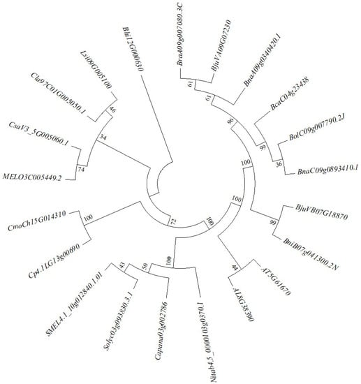 Phylogenetic analysis of ORANGE in Cruciferae and other species. The phylogenetic tree was constructed in MEGA 7.0 software (Mega Limited, Auckland, New Zealand) using the neighbor−joining method. The bootstrap replication values were determined from 1000 replicates.