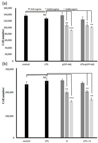 2.3. Effect of p(VP-AA) NPs on Normal and Activated with LPS HMEC-1 Cell Growth