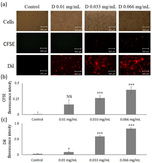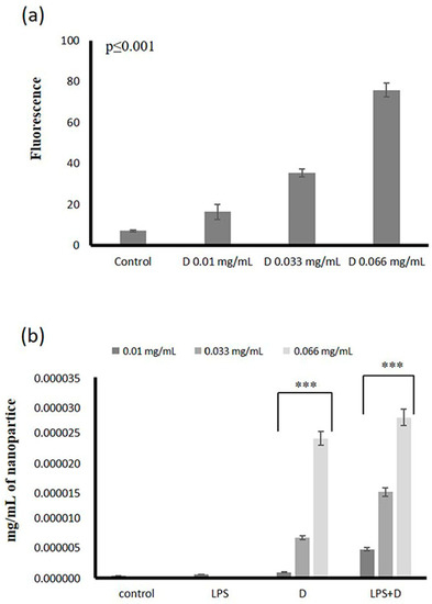 3.7. Measurement of Nanoparticle Uptake Utilizing Fluorescence