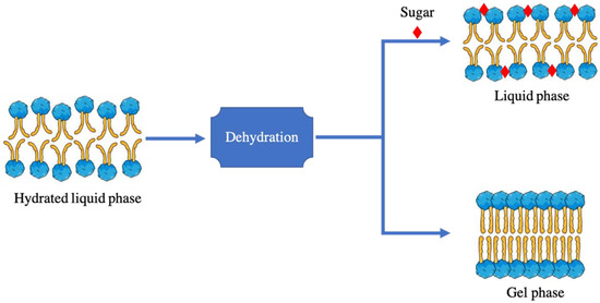 - Koster, K.L.; Webb, M.S.; Bryant, G.; Lynch, D.V. Interactions between soluble sugars and POPC (1-palmitoyl-2-oleoylphosphatidylcholine) during dehydration: Vitrification of sugars alters the phase behavior of the phospholipid. Biochim. Biophys. Acta (BBA)-Biomembr. 1994, 1193, 143–150. [Google Scholar] [CrossRef]