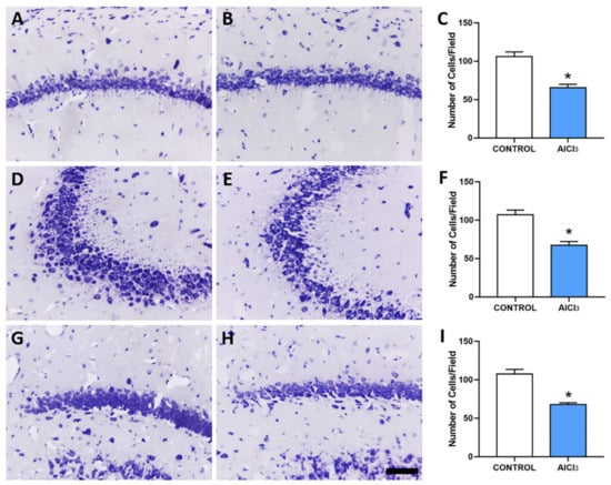 2.2. Aluminum-Exposed Rats Displayed Morphological Damages in the Hippocampus