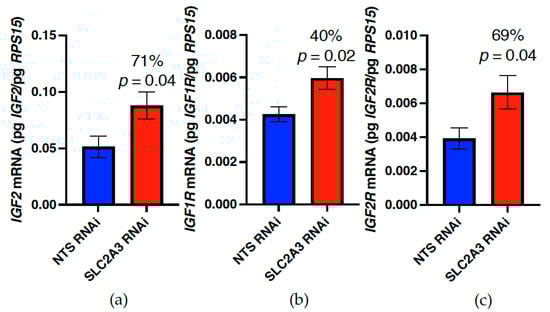 | mRNA | NTS RNAi | SLC2A3 RNAi | p-Value | % Change |