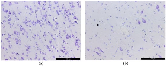 Biopsies of the temporal lobe were fixed with 10% paraformaldehyde in 0.1 M sodium phosphate buffer, dehydrated in a standard way, and embedded in paraffin. Paraffin sections 5–7 μm thick were stained with hematoxylin and eosin (HE) by Spielmeir and Nissl, then dehydrated and mounted with neutral balsam. Sections were analyzed with a light microscope (Zeiss Axiolab, Carl Zeiss Inc., Berlin, Germany). The images at 200× and 400× magnification were used for the tissue morphological analysis.