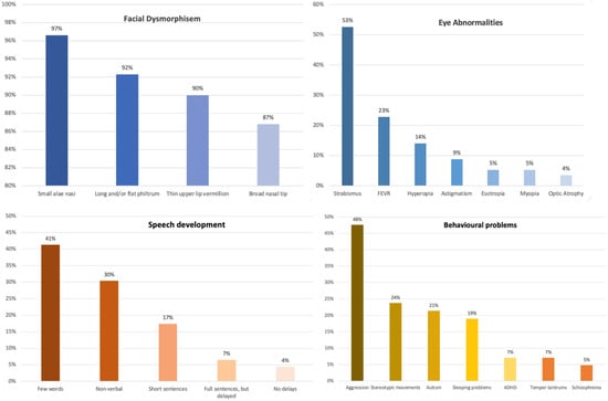 | Short sentences | 8 (17.4) | Scoliosis (not systematically assessed) | 2 |