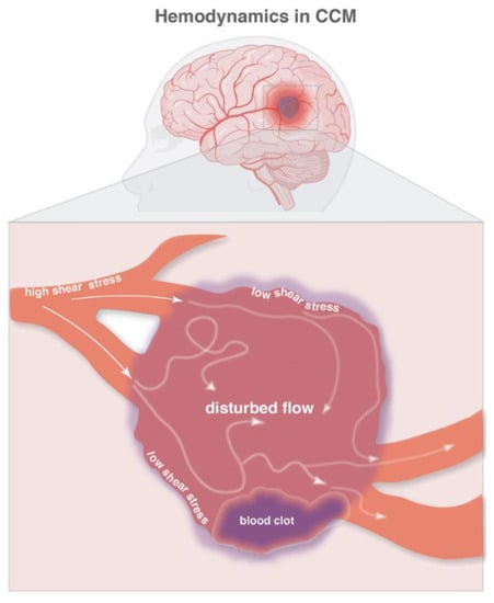 - Li, J.; Zhao, Y.; Coleman, P.; Chen, J.; Ting, K.K.; Choi, J.P.; Zheng, X.; Vadas, M.A.; Gamble, J.R. Low fluid shear stress conditions contribute to activation of cerebral cavernous malformation signalling pathways. Biochim. Biophys. Acta, Mol. Basis Dis. 2019, 1865, 165519. [Google Scholar] [CrossRef]