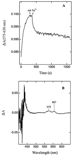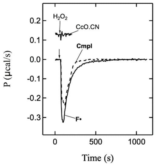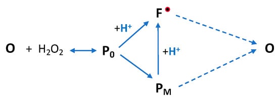 - Fabian, M.; Palmer, G. The interaction of cytochrome oxidase with hydrogen peroxide: The relationship of compounds P and F. Biochemistry 1995, 34, 13802–13810. [Google Scholar] [CrossRef]