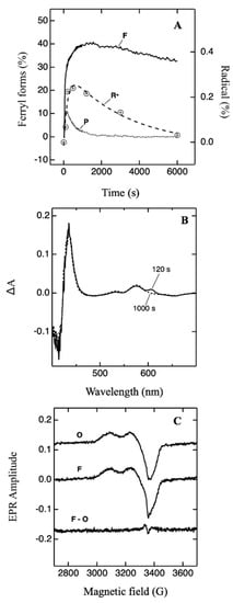 Chicago/Turabian StyleSztachova, Tereza, Adriana Tomkova, Erik Cizmar, Daniel Jancura, and Marian Fabian. 2022. "Radical in the Peroxide-Produced F-Type Ferryl Form of Bovine Cytochrome c Oxidase" International Journal of Molecular Sciences 23, no. 20: 12580. https://doi.org/10.3390/ijms232012580