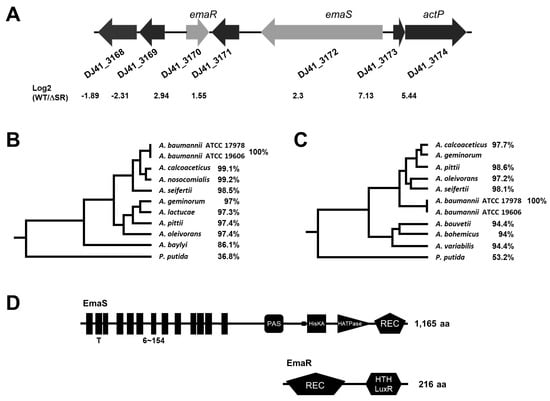 2.3. EmaR Serves as the Cognate Regulator of EmaS