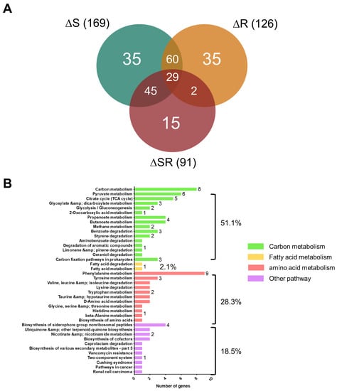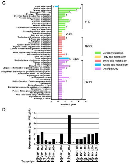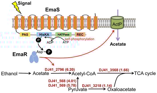 2.5. Gene Expression Changes Respectively Caused by Knockout of EmaSR, EmaS, and EmaR