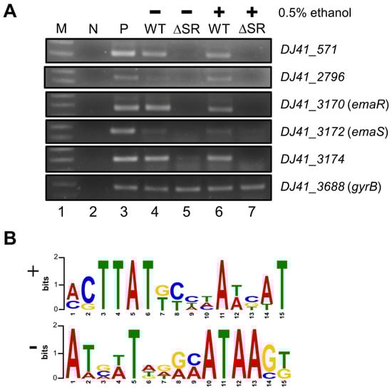 | emaR | + | −15 to −29 | 1.6 × 10−7 | GCCAT ACTTATGCTCAAGAT TACTT |