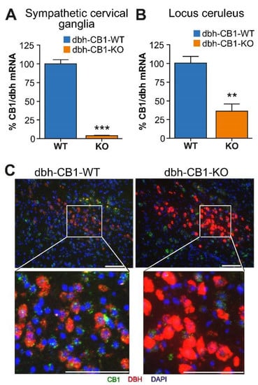 2.1. Characterization of Mice Lacking the CB1 Receptor in dbh-Expressing Cells