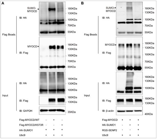 2.1. Myocardin Is SUMOylated at Lysine 573, Which Can Be De-SUMOylated by SENP2