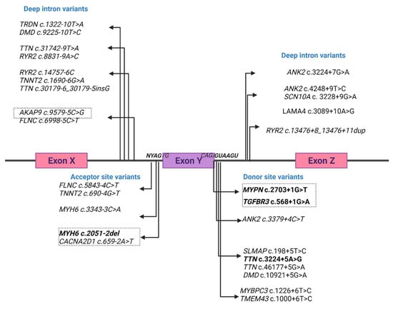 - Anna, A.; Monika, G. Splicing Mutations in Human Genetic Disorders: Examples, Detection, and Confirmation. J. Appl. Genet. 2018, 59, 253–268. [Google Scholar] [CrossRef] [PubMed]