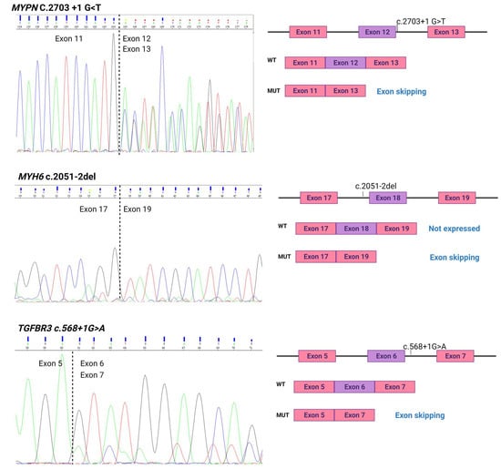 | #10 | TGFBR3 | c.568+1G>A | NM_003243 | NA | High | Partial exon skipping |