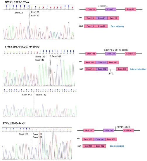 | #26 | TTN | c.31742-9T>A | NM_133378 | NA | Not affected | No aberrant splicing detected |