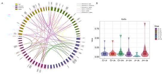 - Wang, Y.; Tang, H.; Debarry, J.D.; Tan, X.; Li, J.; Wang, X.; Lee, T.H.; Jin, H.; Marler, B.; Guo, H.; et al. MCScanX: A toolkit for detection and evolutionary analysis of gene synteny and collinearity. Nucleic Acids Res. 2012, 40, e49. [Google Scholar] [CrossRef]