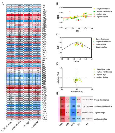 4.8. Analysis of Codon Preferences in the GRF Gene Family of Juglandaceae Family