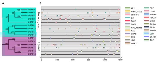4.2. Identification of Juglandaceae Family GRF Gene Family Members