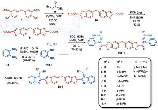 Synthesis of bis(benzofuran–benzimidazole)s 3.