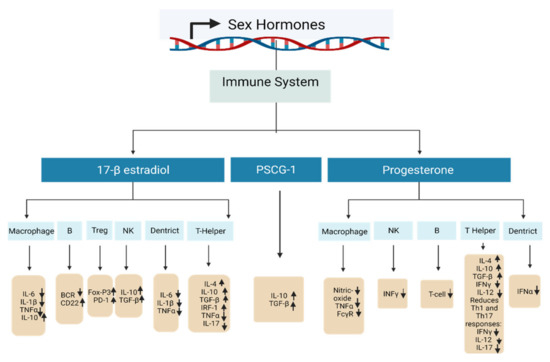 - Moulton, V.R. Sex hormones in acquired immunity and autoimmune disease. Front. Immunol. 2018, 9, 2279. [Google Scholar] [CrossRef]