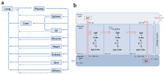 - Garg, A.; Balthasar, J.P. Physiologically-based pharmacokinetic (PBPK) model to predict IgG tissue kinetics in wild-type and FcRn-knockout mice. J. Pharmacokinet. Pharmacodyn. 2007, 34, 687–709. [Google Scholar] [CrossRef] [PubMed]