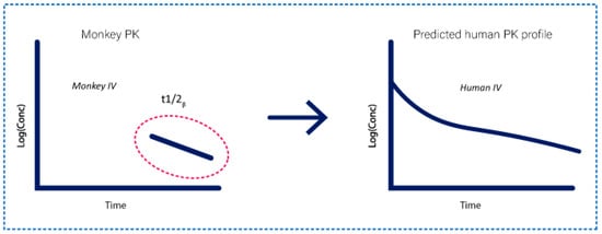 - Oitate, M.; Nakayama, S.; Ito, T.; Kurihara, A.; Okudaira, N.; Izumi, T. Prediction of Human Plasma Concentration-time Profiles of Monoclonal Antibodies from Monkey Data by a Species-invariant Time Method. Drug Metab. Pharmacokinet. 2012, 27, 354–359. [Google Scholar] [CrossRef]