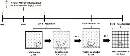 - Simões, A.T.A.; Machado, N.J.; Gonçalves, N.; Kaster, M.; Nunes, A.M.; de Almeida, L.P.; Goosens, K.; Rial, D.; Cunha, R.A. Adenosine A2A Receptors in the Amygdala Control Synaptic Plasticity and Contextual Fear Memory. Neuropsychopharmacology 2016, 41, 2862–2871. [Google Scholar] [CrossRef]