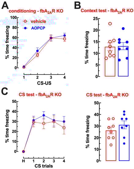 - Wei, C.J.; Augusto, E.; Gomes, C.A.; Singer, P.; Wang, Y.; Boison, D.; Cunha, R.A.; Yee, B.K.; Chen, J.-F. Regulation of Fear Responses by Striatal and Extrastriatal Adenosine A2A Receptors in Forebrain. Biol. Psychiatry 2013, 75, 855–863. [Google Scholar] [CrossRef] [PubMed]