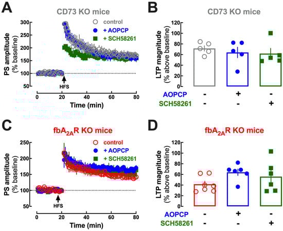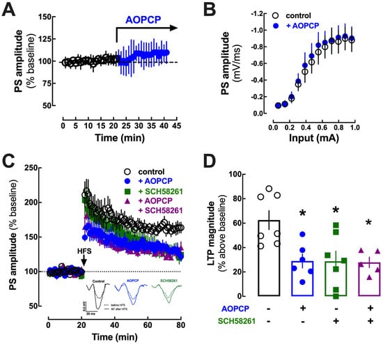 2.2. Inhibition of CD73 Blunts A2AR-Mediated Control of Amygdala LTP