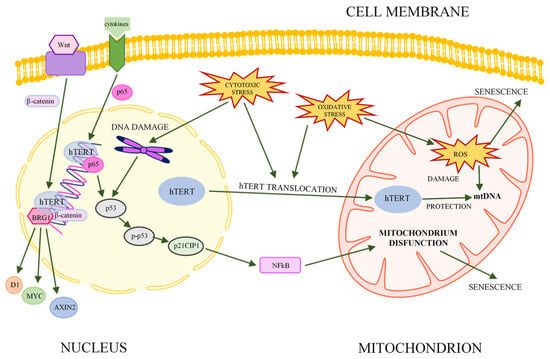 - Massard, C.; Zermati, Y.; Pauleau, A.L.; Larochette, N.; Métivier, D.; Sabatier, L.; Kroemer, G.; Soria, J.C. HTERT: A Novel Endogenous Inhibitor of the Mitochondrial Cell Death Pathway. Oncogene 2006, 25, 4505–4514. [Google Scholar] [CrossRef]