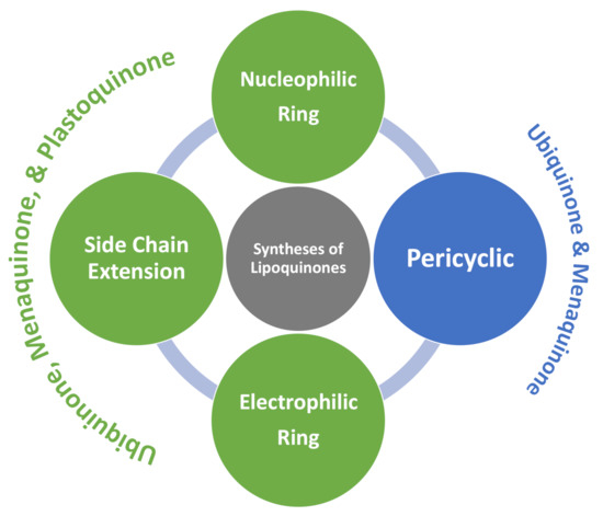 Lipoquinones are molecules involved in a variety of biological processes. Their appearance may be simple, but their properties are deceptively complex. This class of lipids contains a redox active, polar 1,4-quinone headgroup and a hydrophobic sidechain consisting of several isoprenoid groups. Lipoquinones are components within the highly ordered lipid bilayer [1,2,3]. One example of lipoquinone function is to act as the electron carriers responsible for transferring electrons between membrane-bound protein complexes within the electron transport chain, ultimately producing adenosine triphosphate (ATP). The structure of lipoquinones, such as headgroup structure and composition of the sidechain, varies between whether the biological system is bacterial, plant, or mammalian and their biological functions. This is not surprising because the structure of the quinone headgroup and isoprenoid sidechain has been used for taxonomic identification of prokaryotes and eukaryotes prior to the development of genetic classification [4,5].