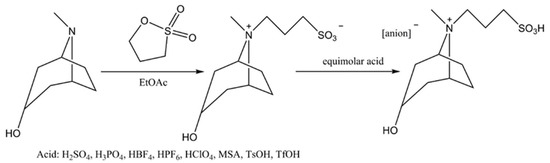 2.2. Acidic Ionic Liquids Synthesized by a Two-Step Process